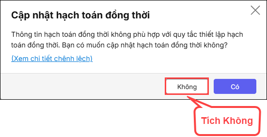 - Nhấn Cất phần mềm hiển thị thông báo cập nhật hạch toán đồng thời tích Không.