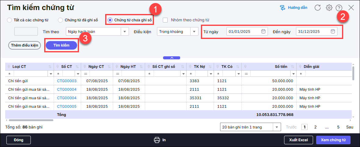 Nguyên nhân 4: Chứng từ chi tạm ứng đang ở trạng thái Bỏ ghi sổGiải pháp: