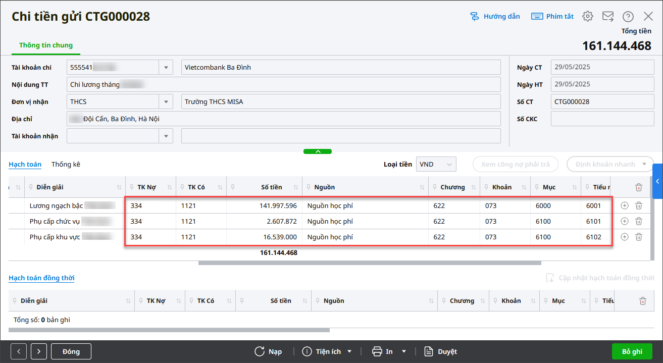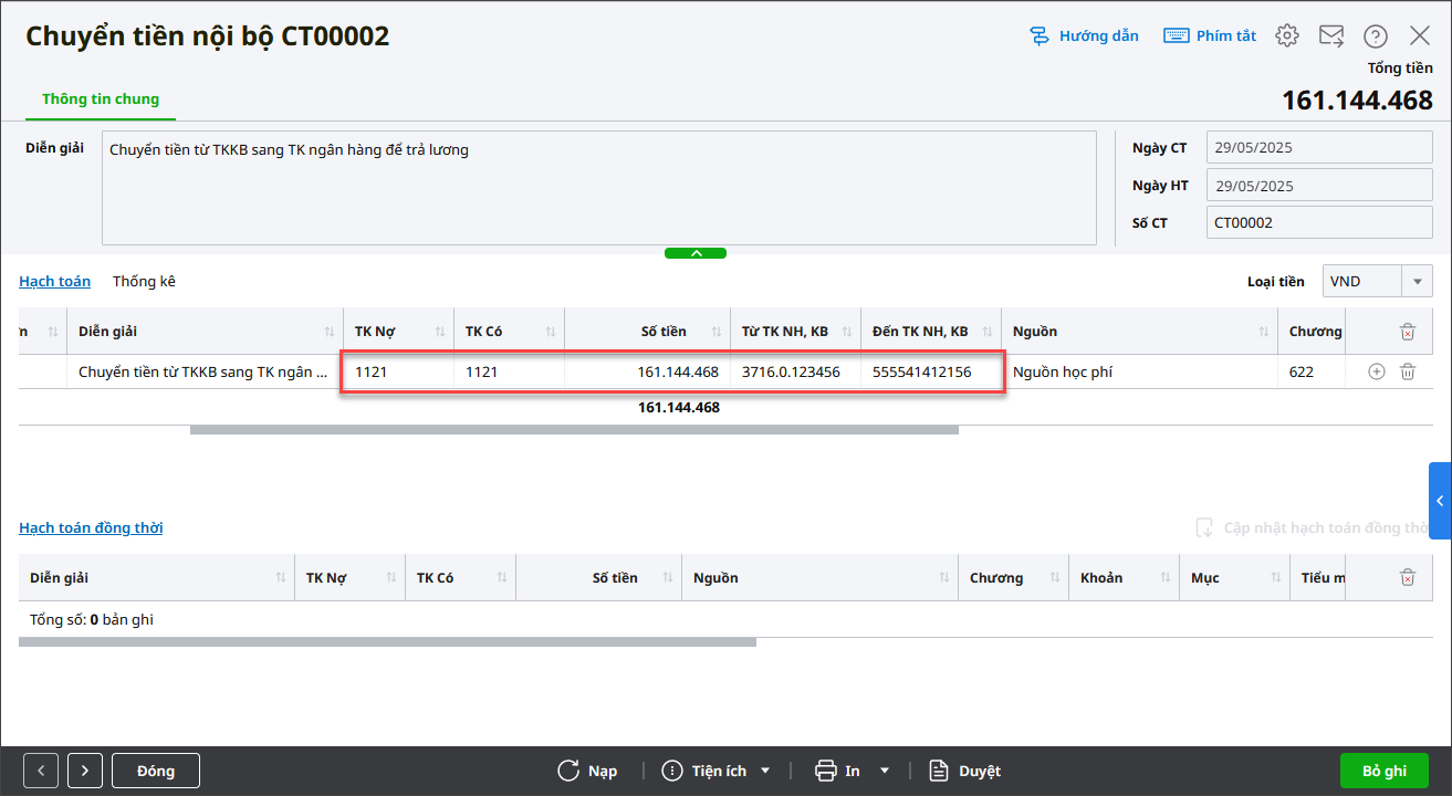 2. Chuyển lương từ TKNH đến TK lương của từng cán bộ nhân viên