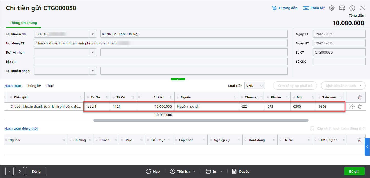 Kinh phí công đoànHạch toán tương tự chi thanh toán bảo hiểm. 1. Chi thanh toán kinh phí công đoàn