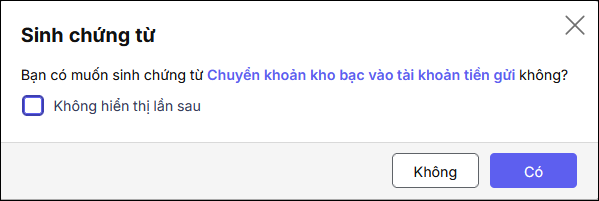 3. Chương trình sẽ hiển thị thông báo có muốn sinh chứng từ hạch toán hay không, bạn nhấn Có.