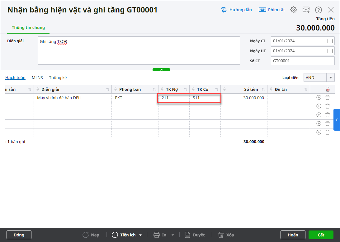 - Nhập Nguyên giá.