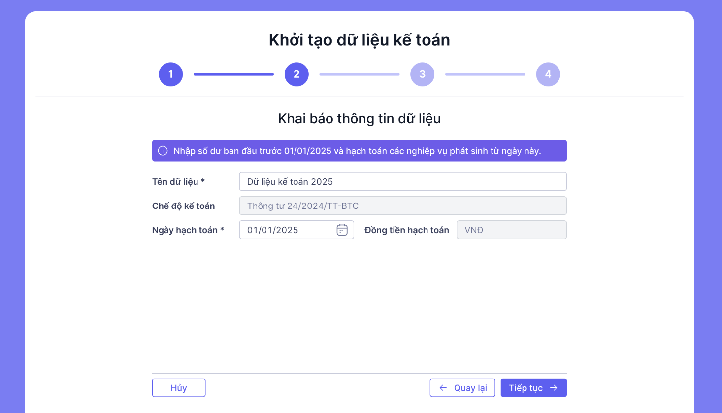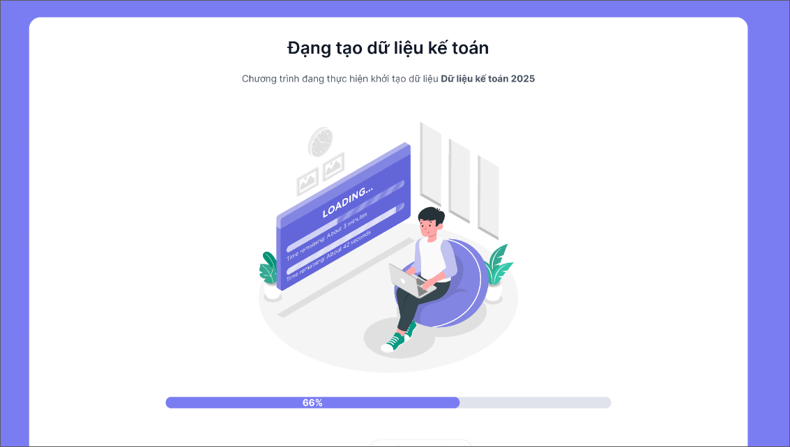 5. Vui lòng chờ trong giây lát để hệ thống khởi tạo dữ liệu kế toán.