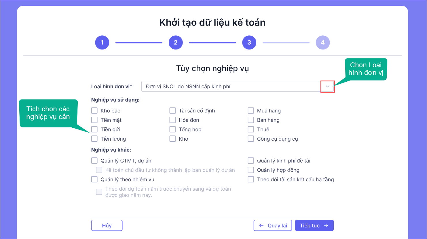3. Thực hiện Tùy chọn nghiệp vụ cần sử dụng: