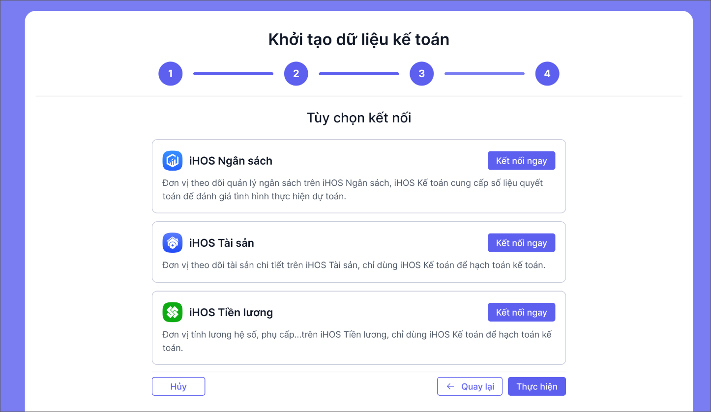 • Nhấn Kết nối ngay với các ứng dụng khác trong nền tảng iHOS như Ngân sách, Tài sản, Tiền lương, Chấm công,…
