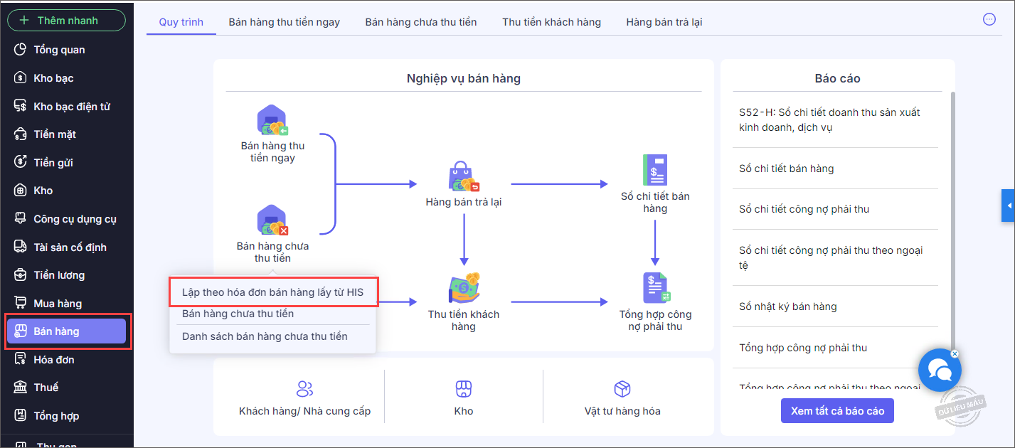 Giúp đơn vị có thể lập các chứng từ bán hàng chưa thu tiền theo hóa đơn bán hàng lấy từ phần mềm HIS.