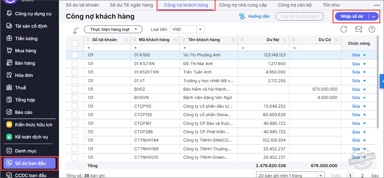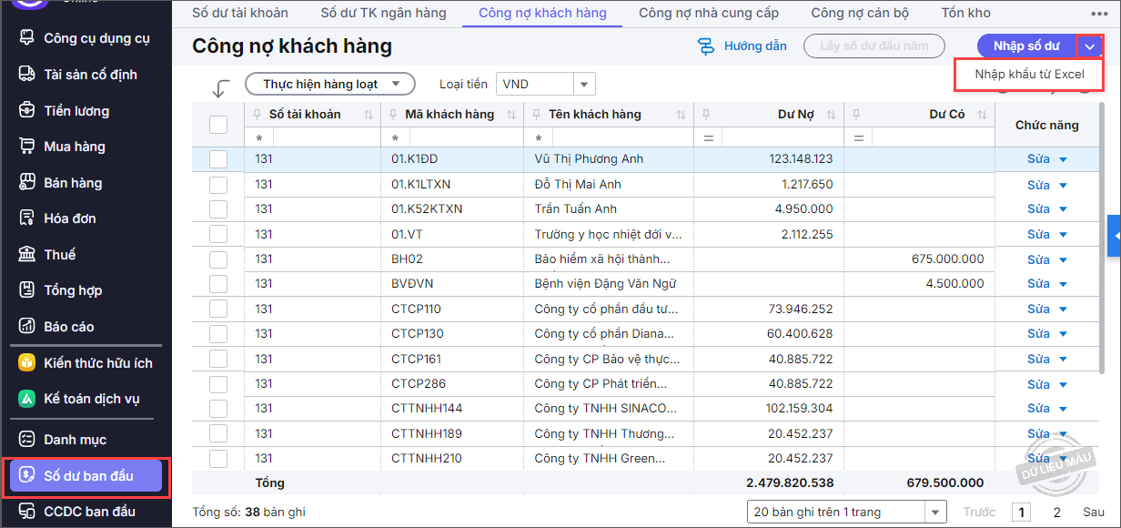 *Lưu ý: Trước khi nhập số dư công nợ khách hàng, cần khai báo Danh mục Khách hàng.