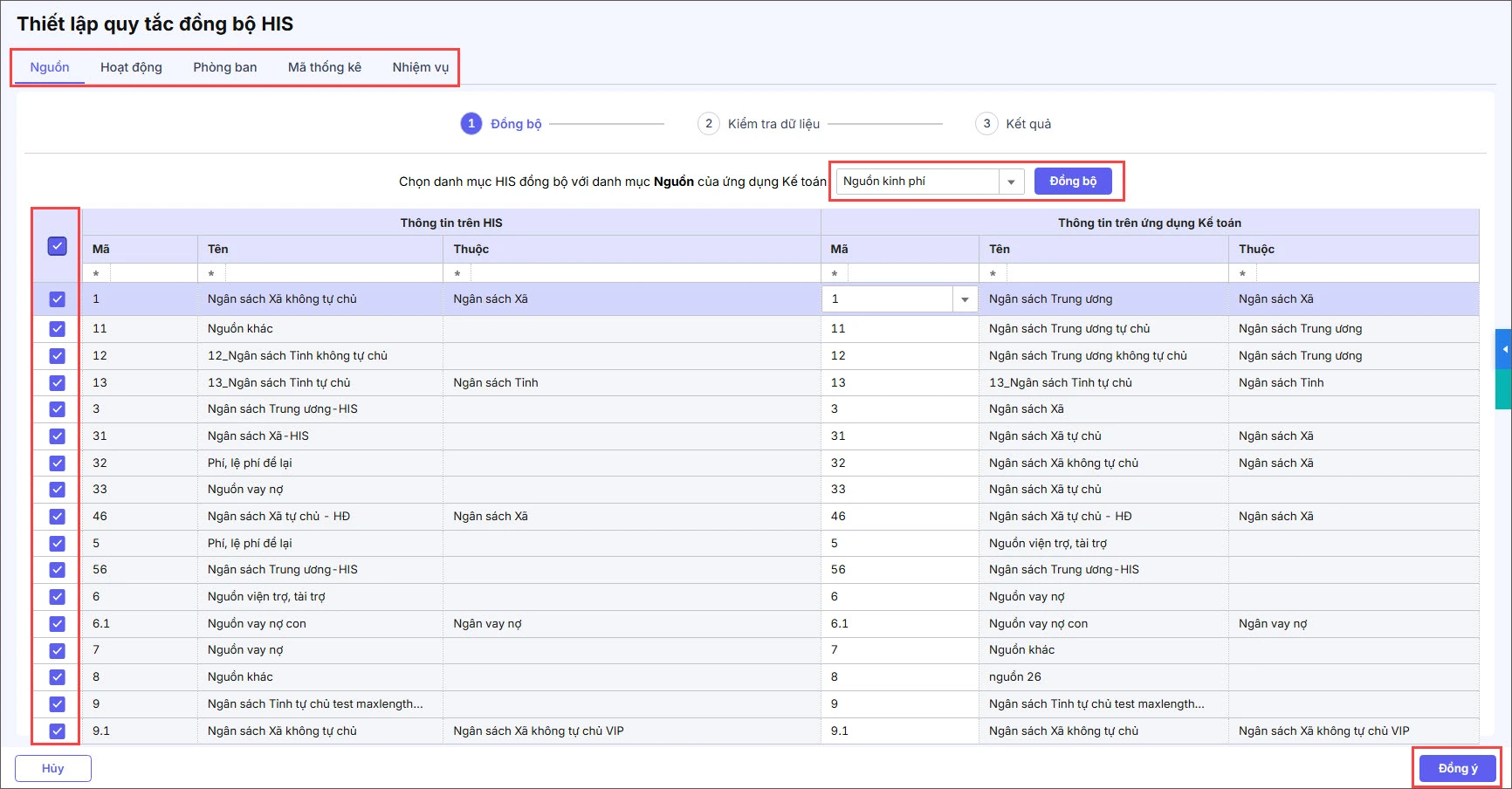 Bước 5: Hệ thống sẽ tự động ghép danh mục trên iHOS Kế toán với danh mục trên HIS. Bạn có thể chọn lại nếu cần.
