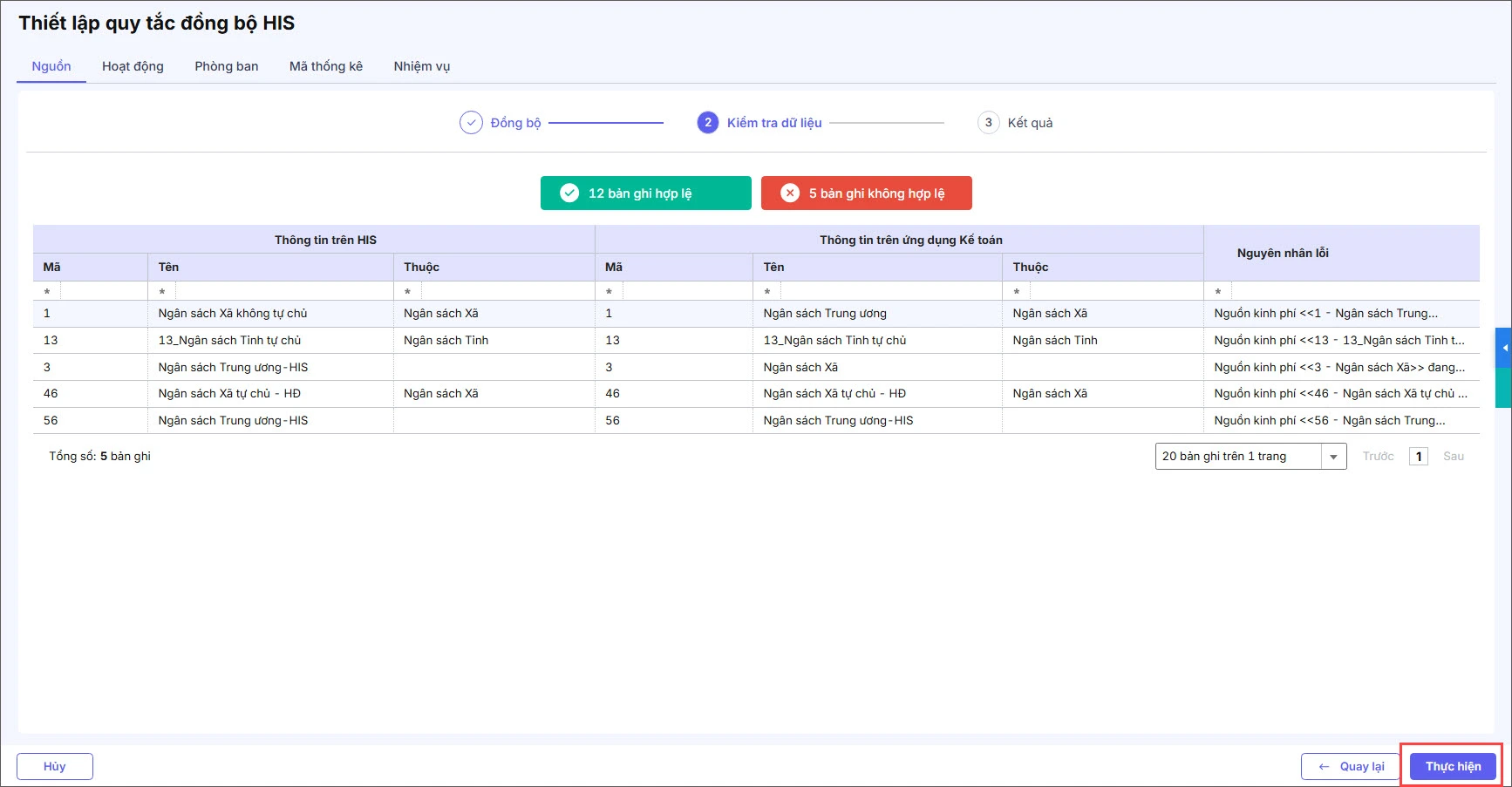 Bước 7: Kiểm tra lại số bản ghi hợp lệ và số bản ghi chưa hợp lệ. Nhấn Thực hiện để ghi nhận vào hệ thống.