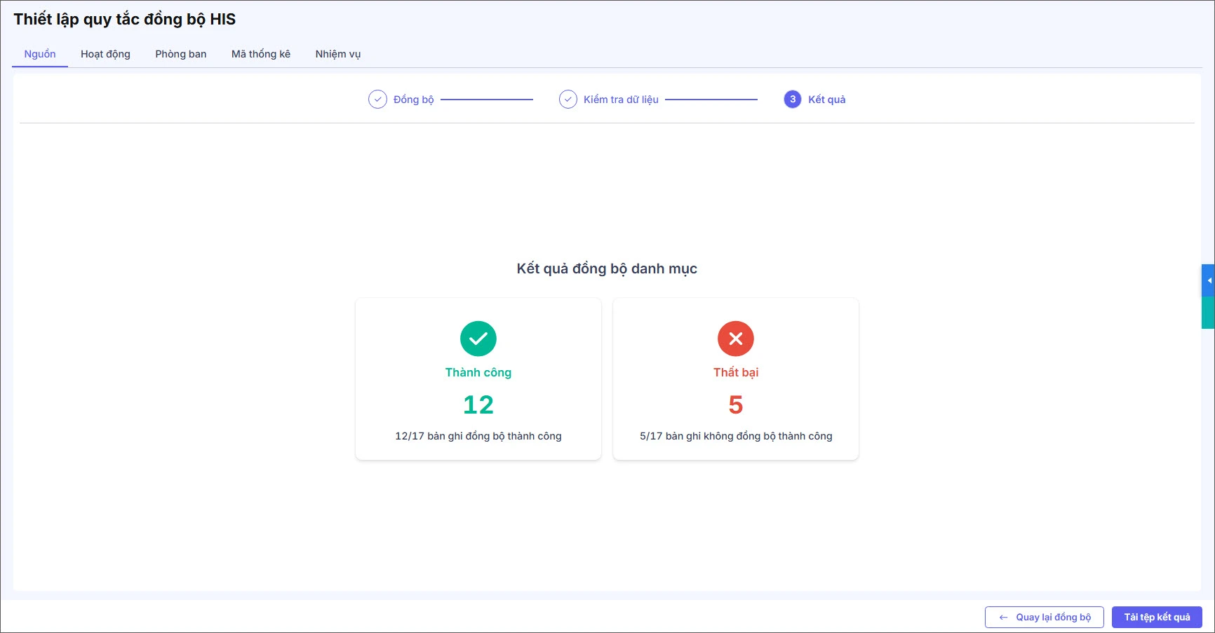 Bước 8: Kiểm tra kết quả đồng bộ danh mục và có thể Tải tệp kết quả nếu cần.
