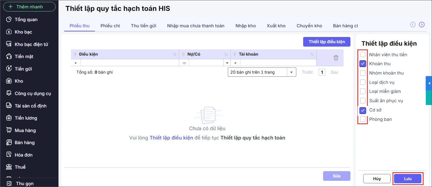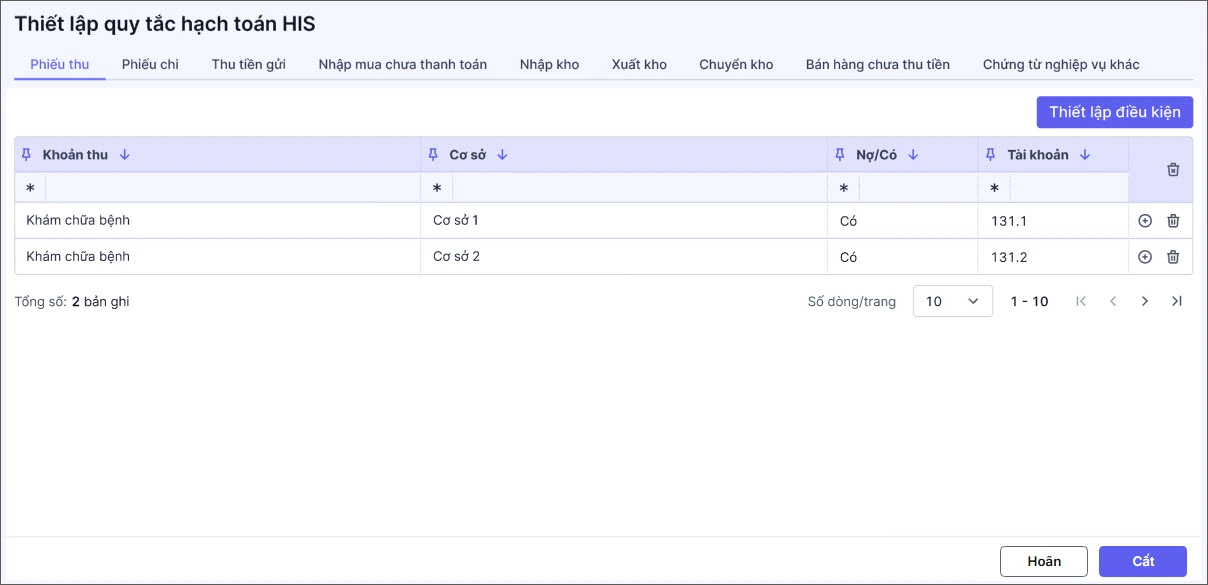 Thiết lập quy tắc hạch toán HIS