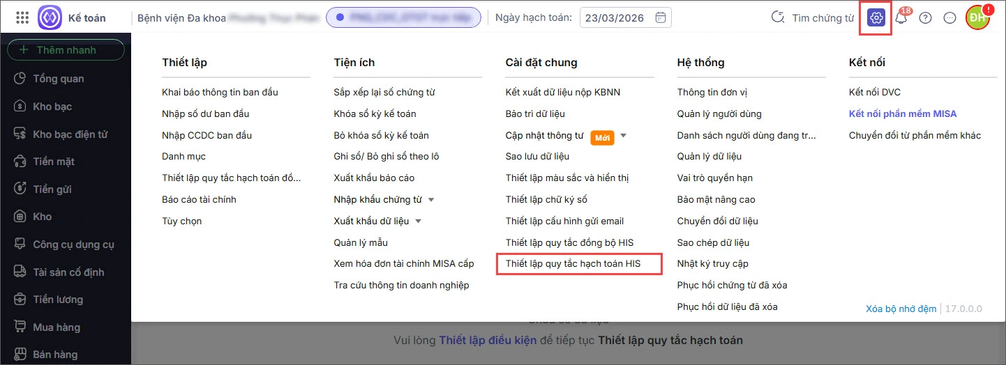 Bước 2: Nhấn Thiết lập quy tắc hạch toán HIS.