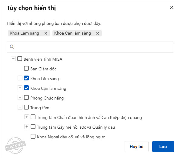 Trường hợp người dùng muốn chia sẻ riêng cho phòng ban nào thì chọn Tùy chọn, sau đó chọn phòng ban, nhấn Lưu.