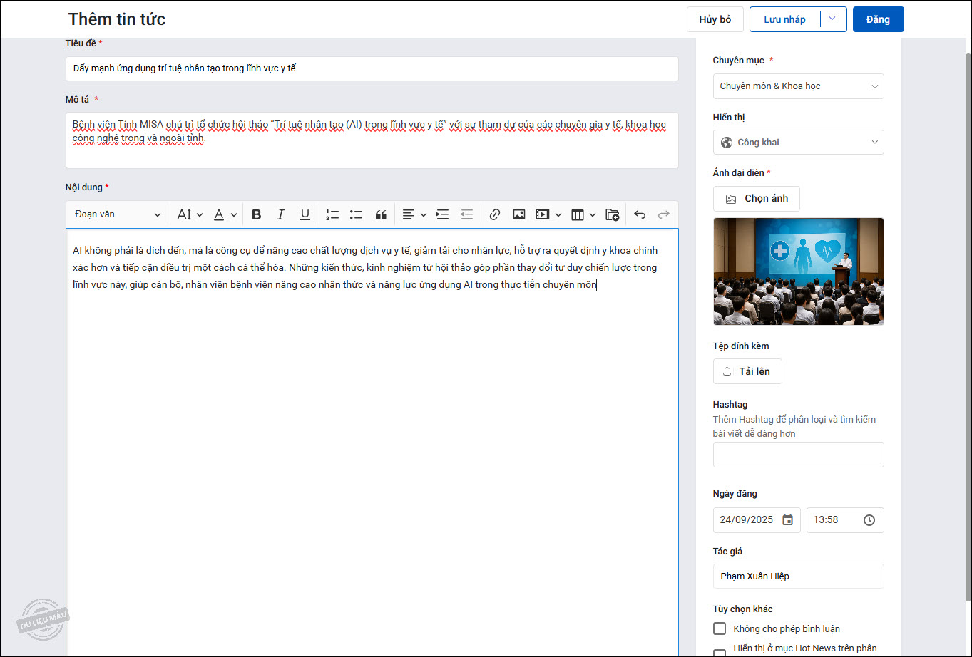 – Sửa bài viết: Sửa nội dung và các thiết lập của tin tức.