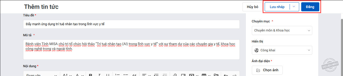 2. Soạn nội dung bài viết bao gồm Tiêu đề, Mô tả, Nội dung.