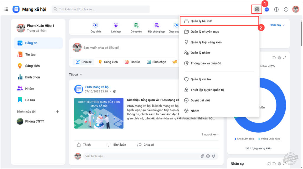 - Nhấn vào biểu tượng ⚙️, chọn Quản lý bài viết.