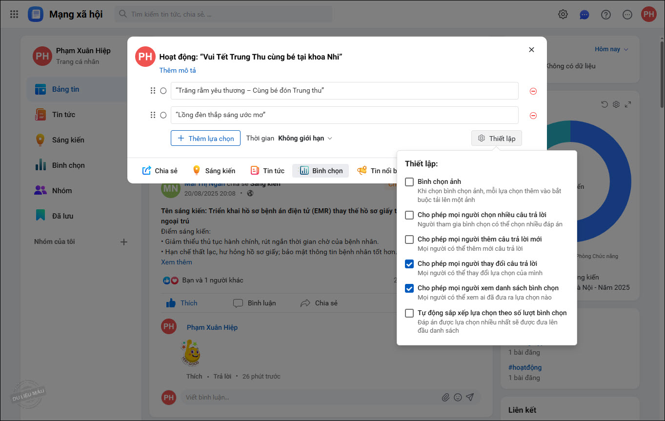 6. Có thể thiết lập chế độ hiển thị công khai hoặc giới hạn đối tượng được phép bình chọn.