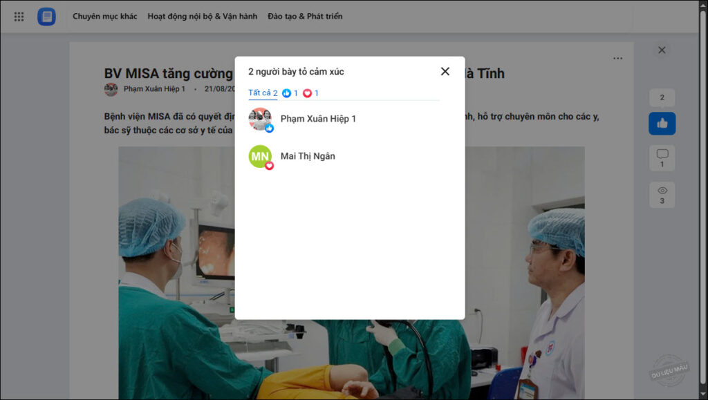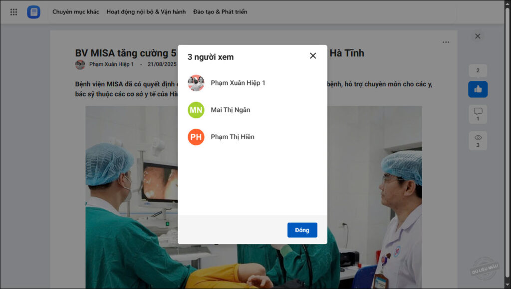 - Đối với bài viết cá nhân, anh/chị có thể xem số lượng và danh sách người đã xem bài viết, tương tác với bài viết.