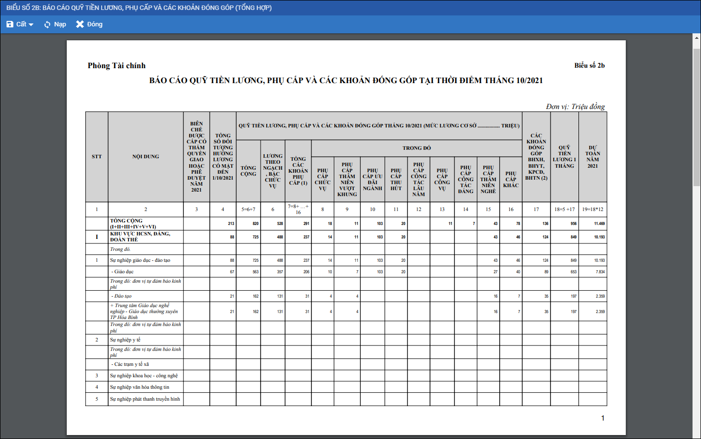 • Mẫu biểu 2b: Tổng hợp quỹ lương, phụ cấp và các khoản đóng góp theo tháng.