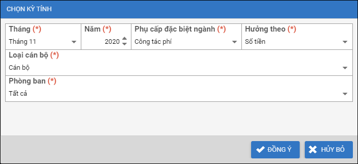 3. Phần mềm cho phép tạo nhiều bảng cho cùng 1 khoản phụ cấp đặc biệt ngành trong cùng tháng, có thể tạo theo loại cán bộ, phòng ban để giới hạn lại CBNV lựa chọn theo đúng thực tế.