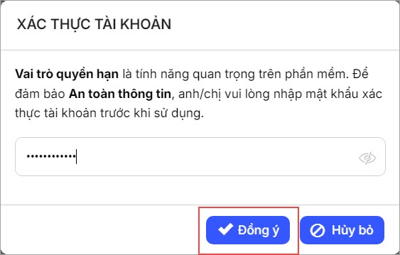 - Nhập mật khẩu đang sử dụng để đăng nhập vào phần mềm, chọn Đồng ý