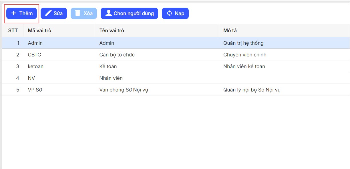 - Để thêm các vai trò theo nhu cầu quản lý đơn vị, chọn Thêm.