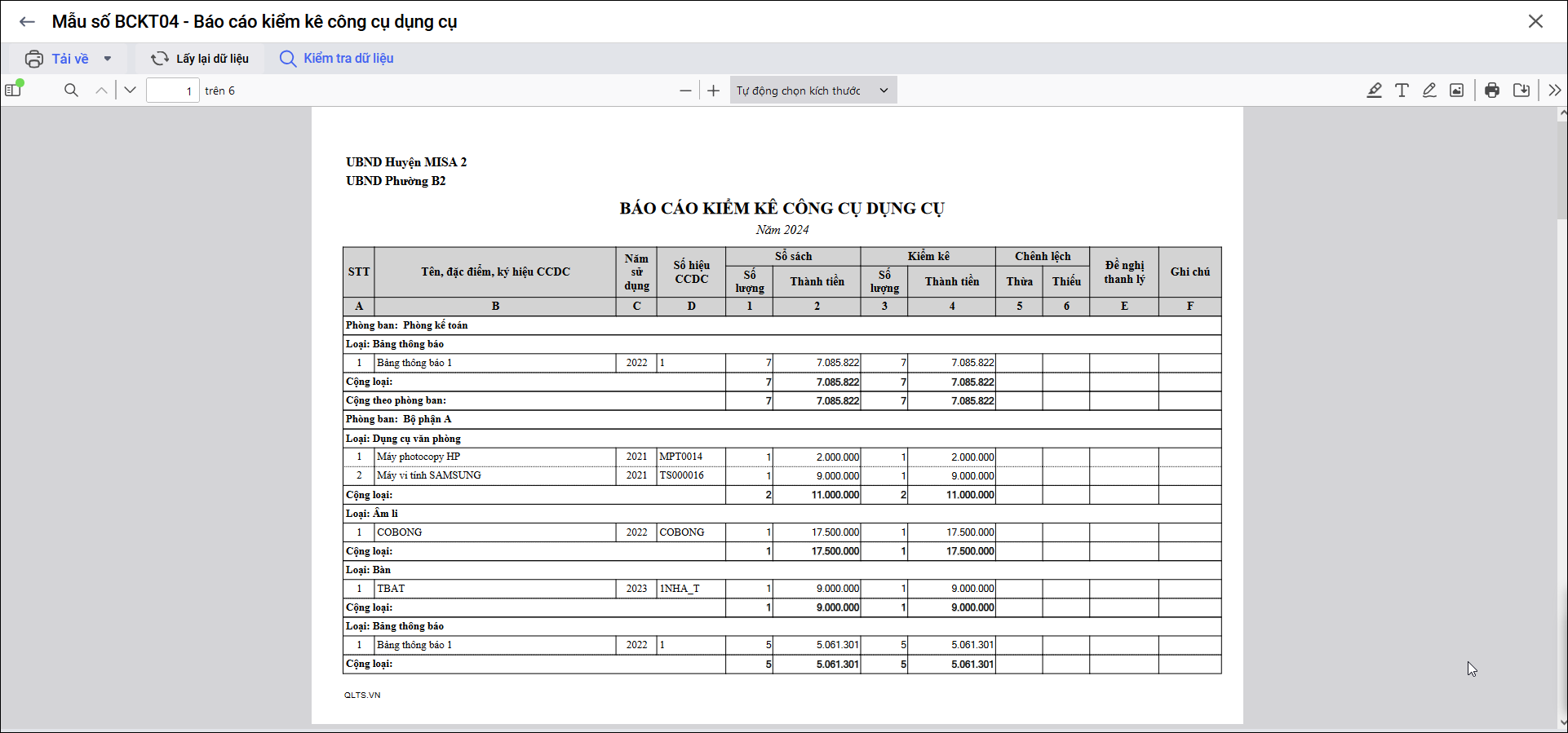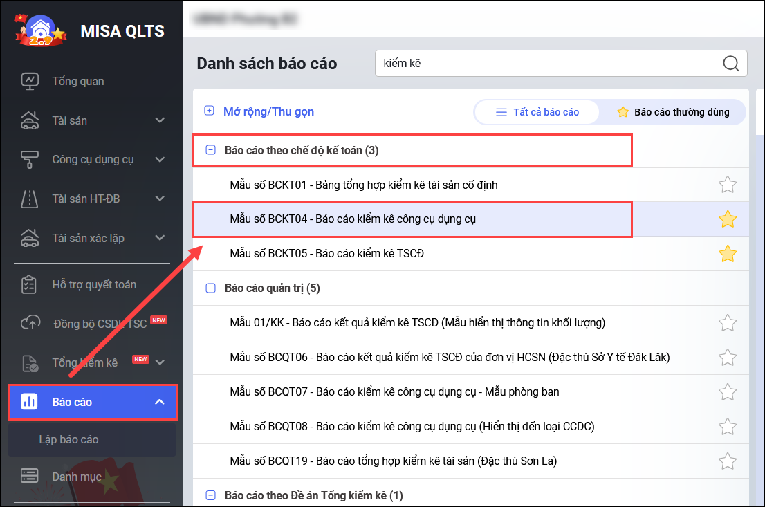 Bước 2: In biểu BCKT04 – Báo cáo kiểm kê công cụ dụng cụ