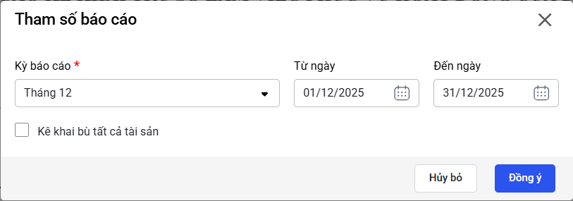 • Tích chọn Kê khai bù tất cả tài sản (nếu cần).