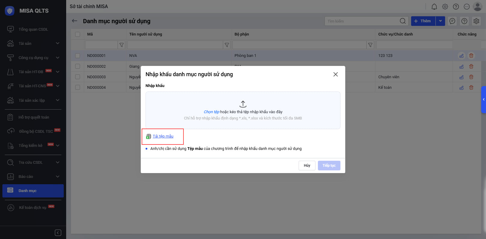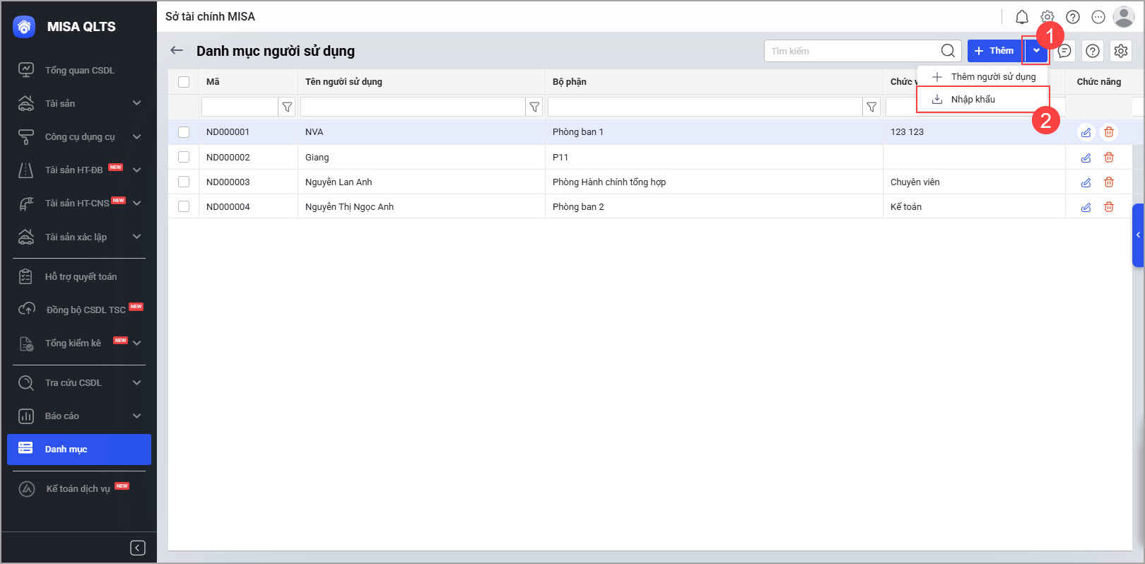 2.1. Nhập khẩu Danh mục Người sử dụng