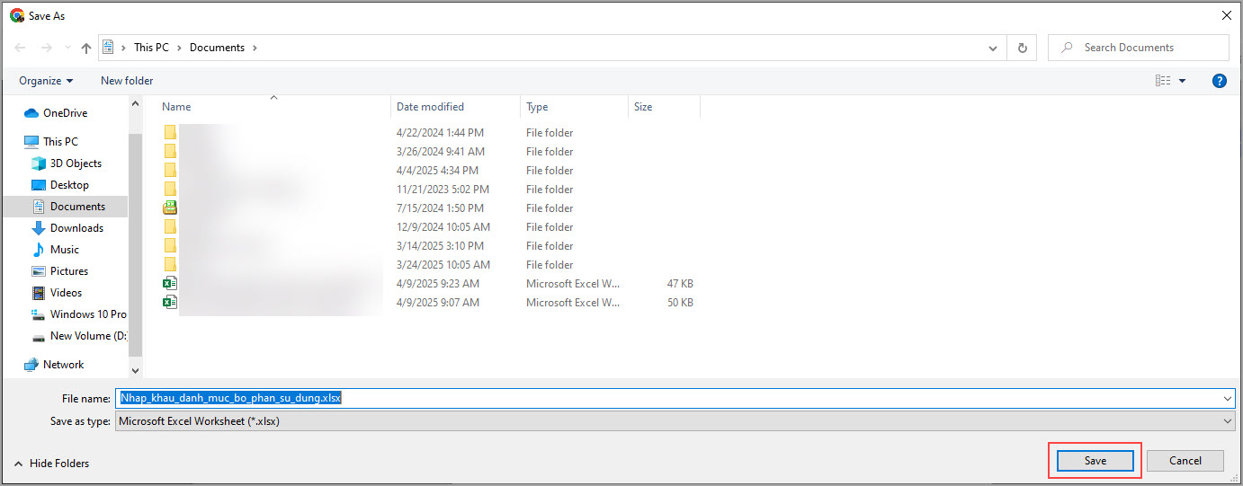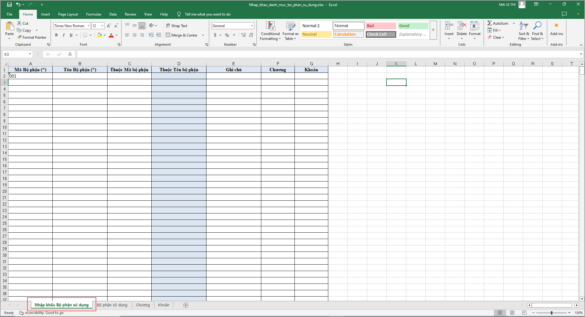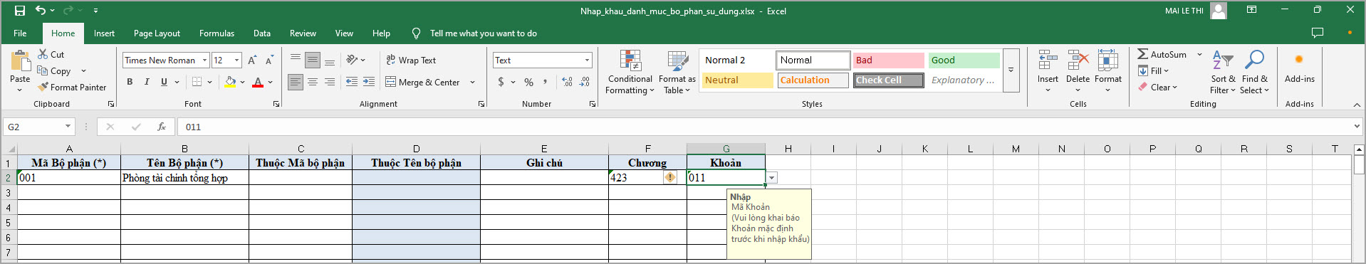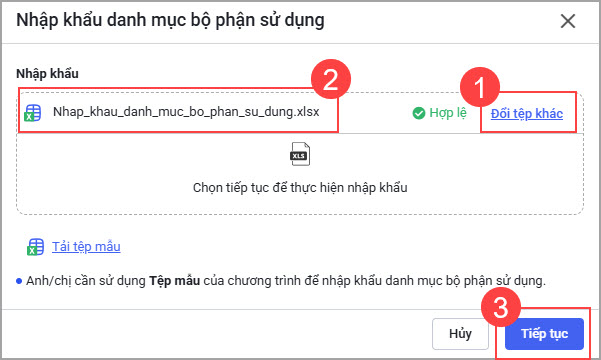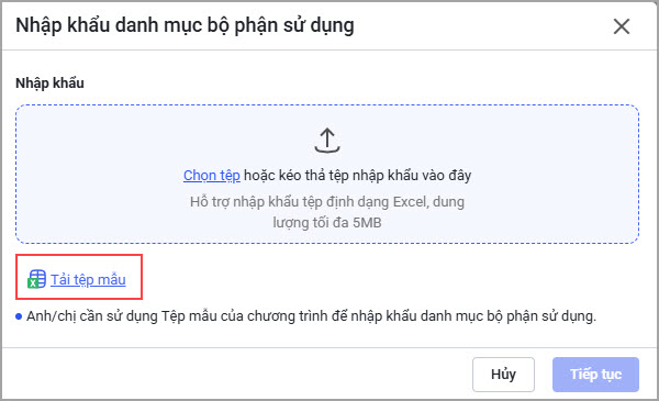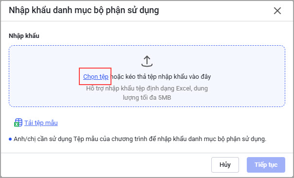 2.2. Nhập khẩu Danh mục Phòng ban/Bộ phận sử dụng