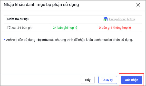 • Sau khi không còn bản ghi lỗi nữa chọn Xác nhận