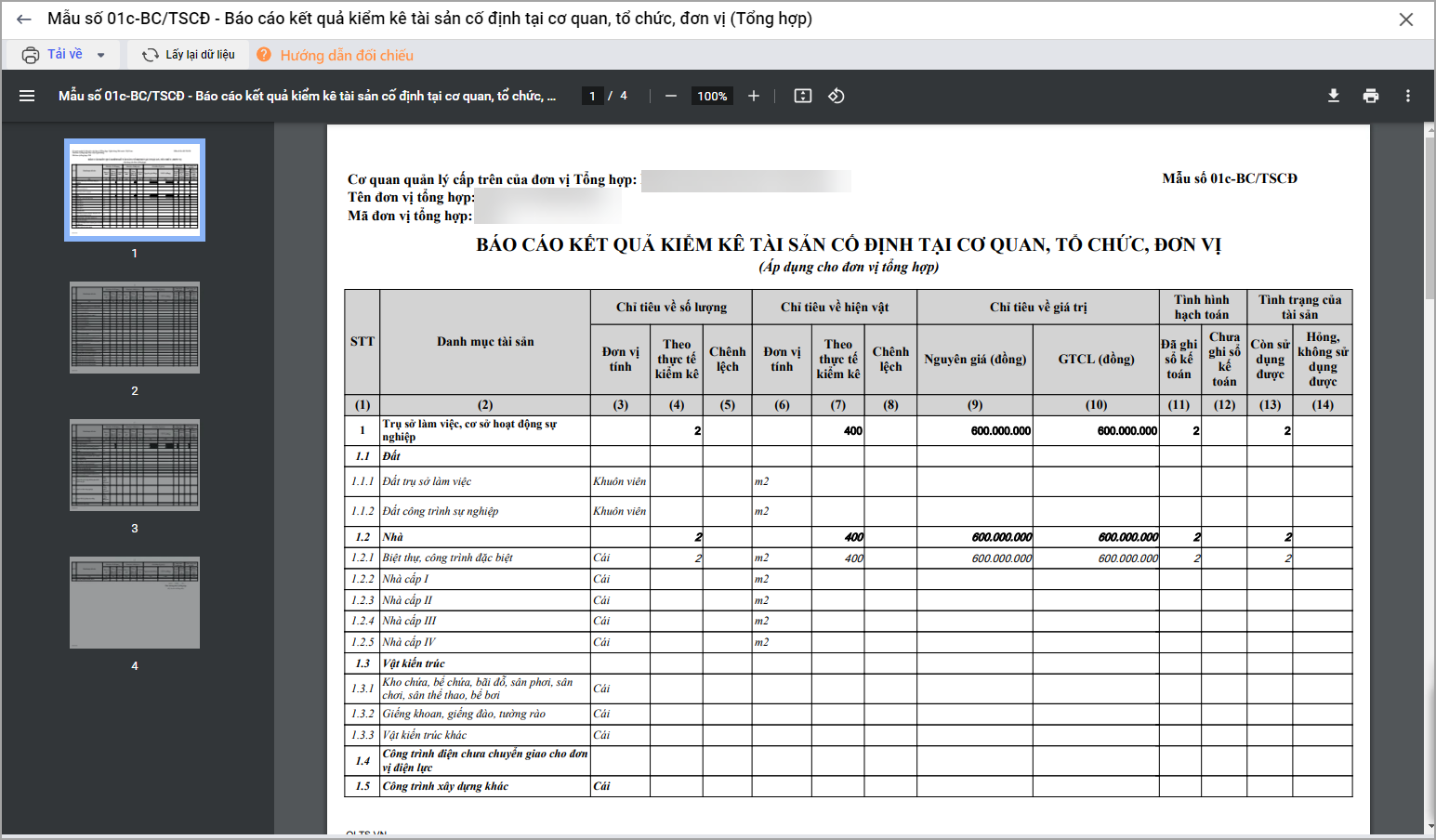 Bài viết này giúp cán bộ đơn vị tổng hợp có thể lập các Báo cáo kiểm kê tài sản cố định tổng hợp chung theo Mẫu số 01c-BC/TSCĐ quy định tại Quyết định 1138/2024/QĐ-BTC