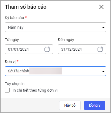 Bước 3: Nhấn Đồng ý để xem Báo cáo kiểm kê tài sản cố định