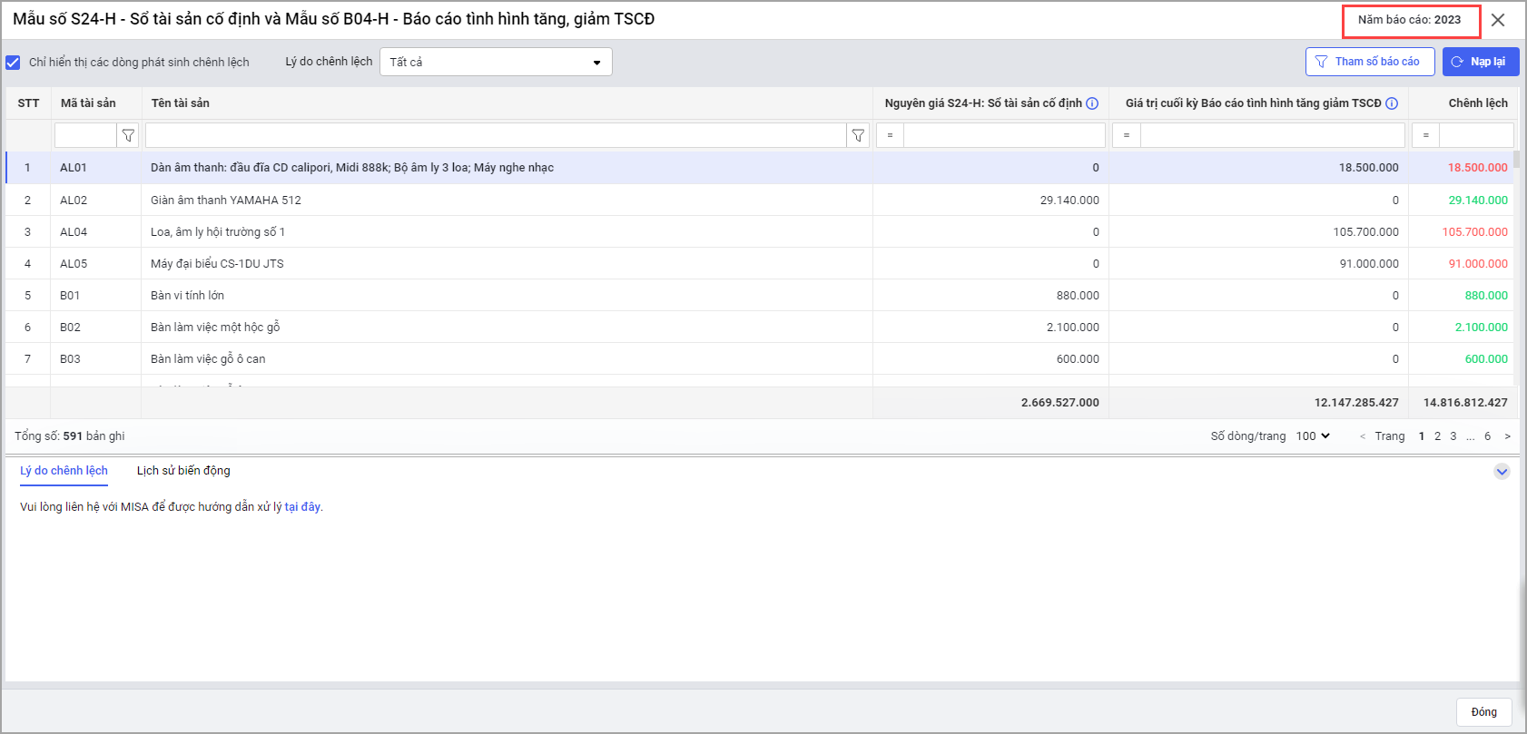 - Bổ sung năm báo cáo trên màn hình Đối chiếu báo cáo.