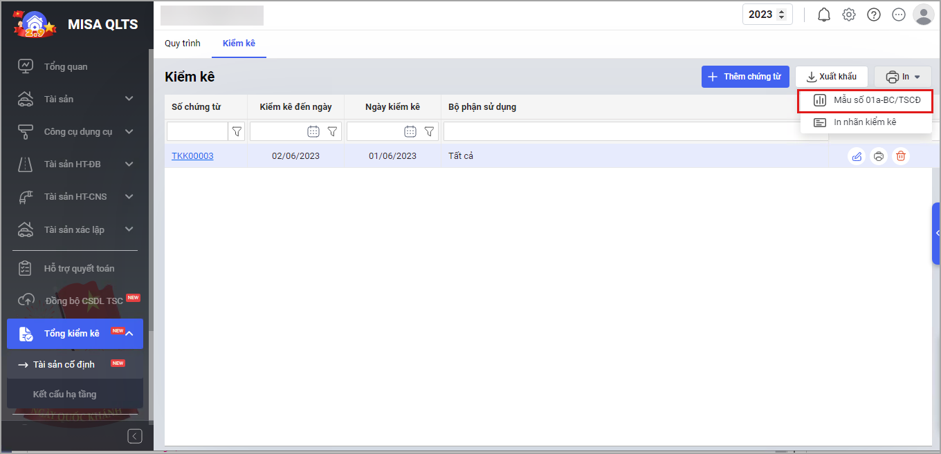 Kể từ phiên bản R44: Giúp anh/chị có thể chỉnh sửa biểu mẫu 01a-BC Báo cáo kiểm kê tài sản cố định theo công văn 8131/BTC-QLCS của Bộ tài chính