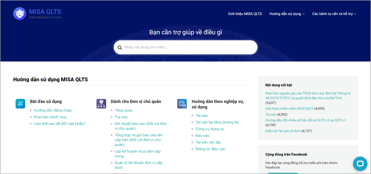 - Trên giao diện phần mềm có mục (?) Mục trợ giúp, khi nhấn vào luôn dẫn đến trang help MISA QLTS. Tuy nhiên, về thực tế ngoài Kênh help MISA QLTS, MISA còn có các kênh khác để hỗ trợ khách hàng.