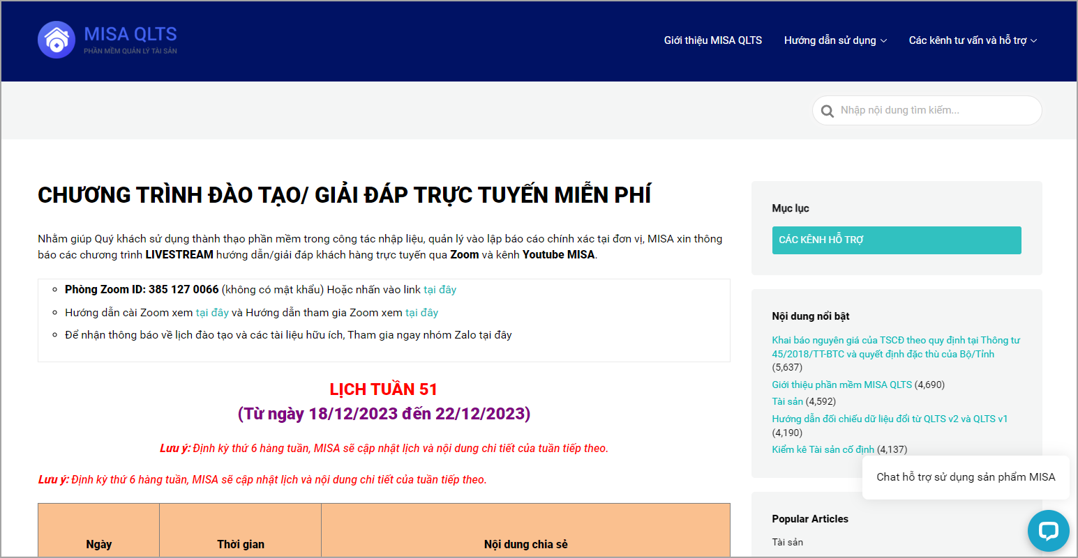 - Đào tạo/Giải đáp trực tuyến qua Zoom: Phần mềm dẫn đến trang thông tin có các buổi đào tạo và giải đáp thắc mắc khi khách hàng sử dụng phần mềm.