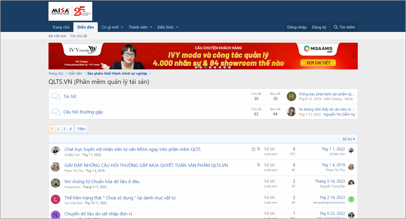 - Diễn đàn MISA: Nơi hỏi/đáp thắc mắc của khách hàng.