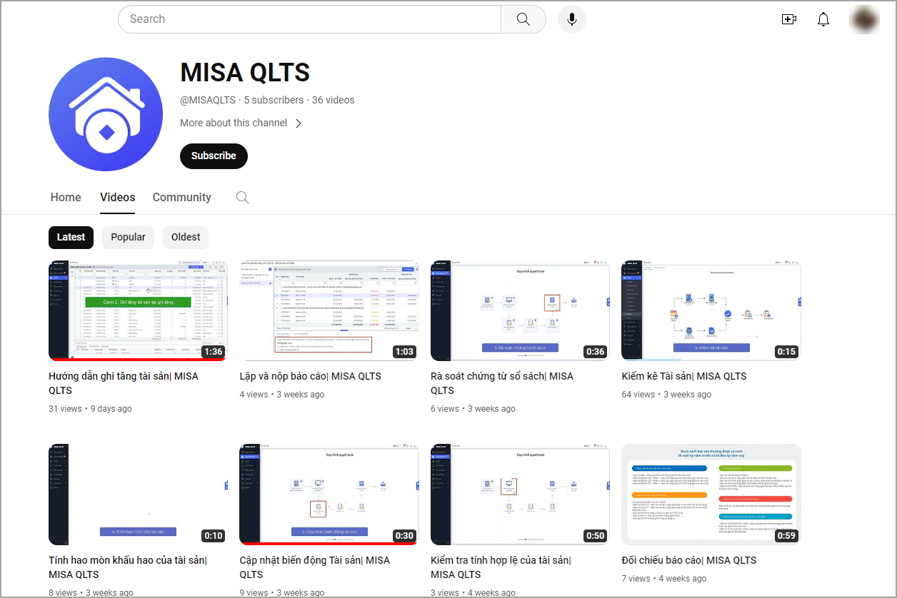 - Đào tạo MISA QLTS qua video: Phần mềm dẫn đến kênh Youtube MISA QLTS.