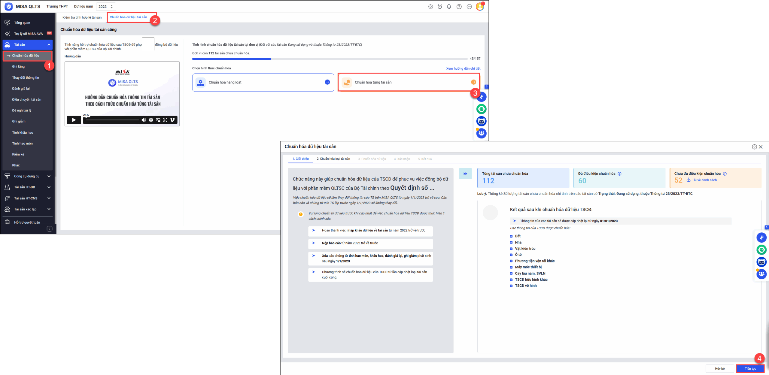 • Chọn Chuẩn hóa từng tài sản sau đó nhấn Tiếp tục