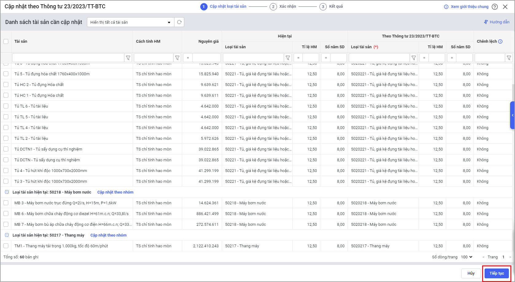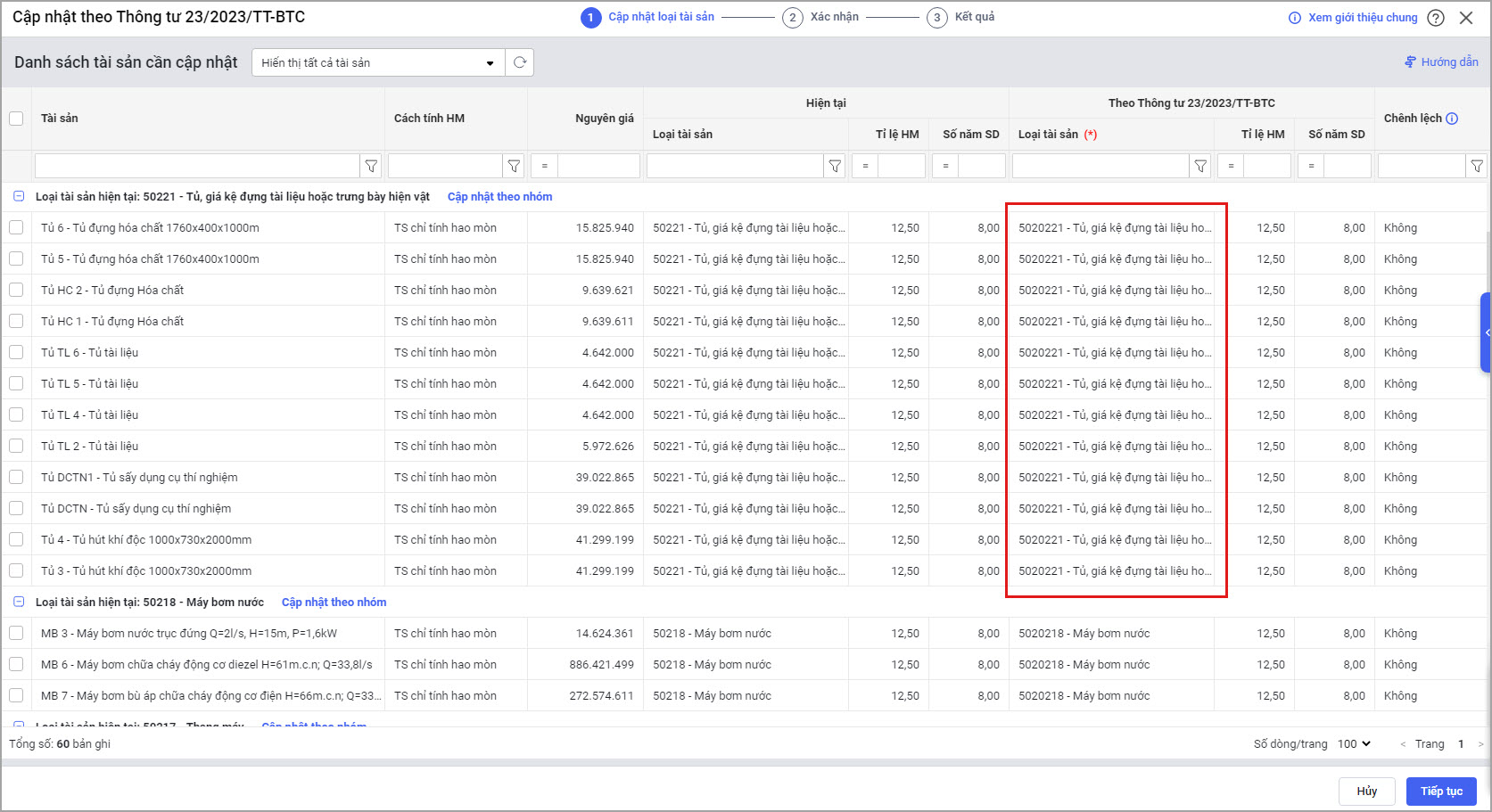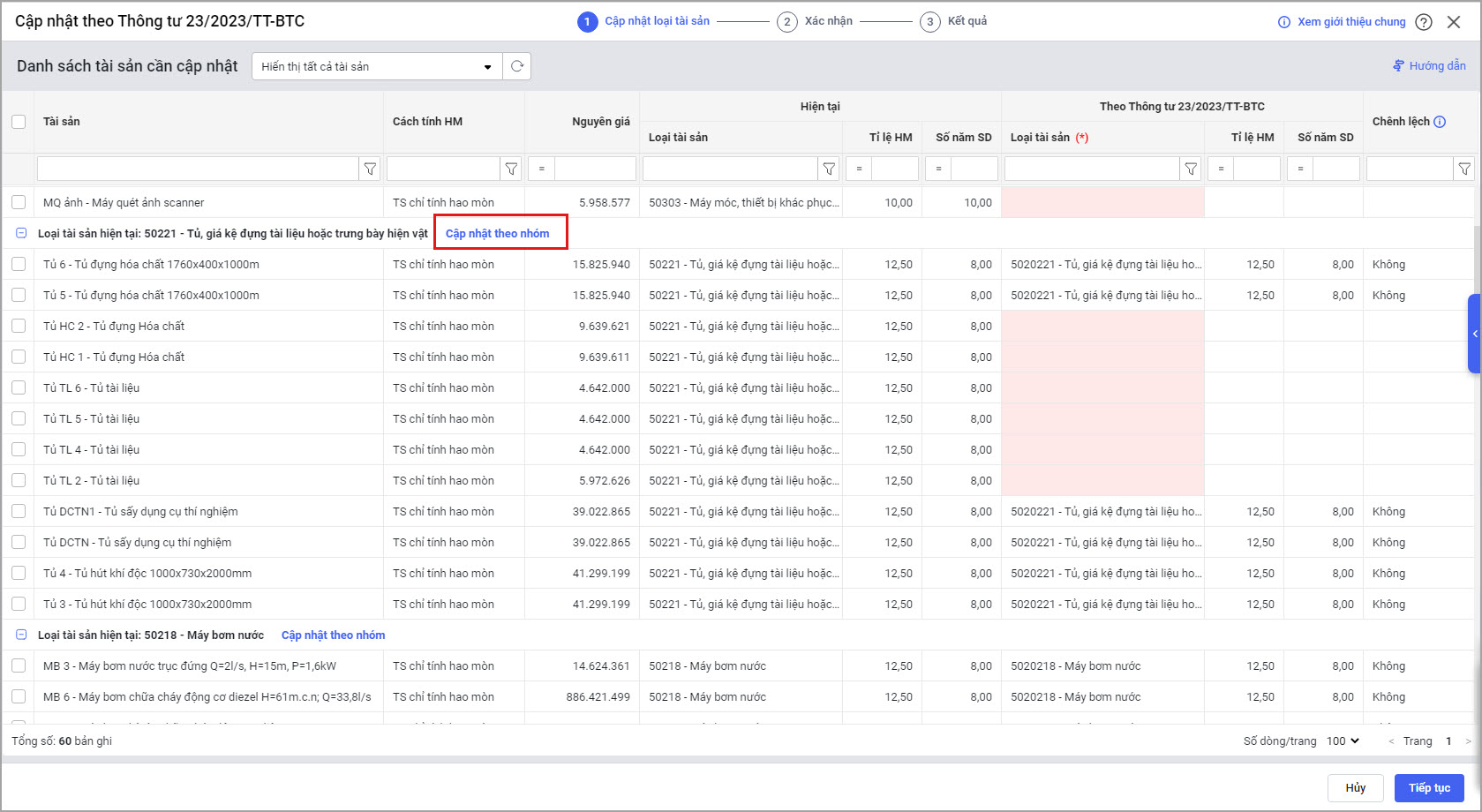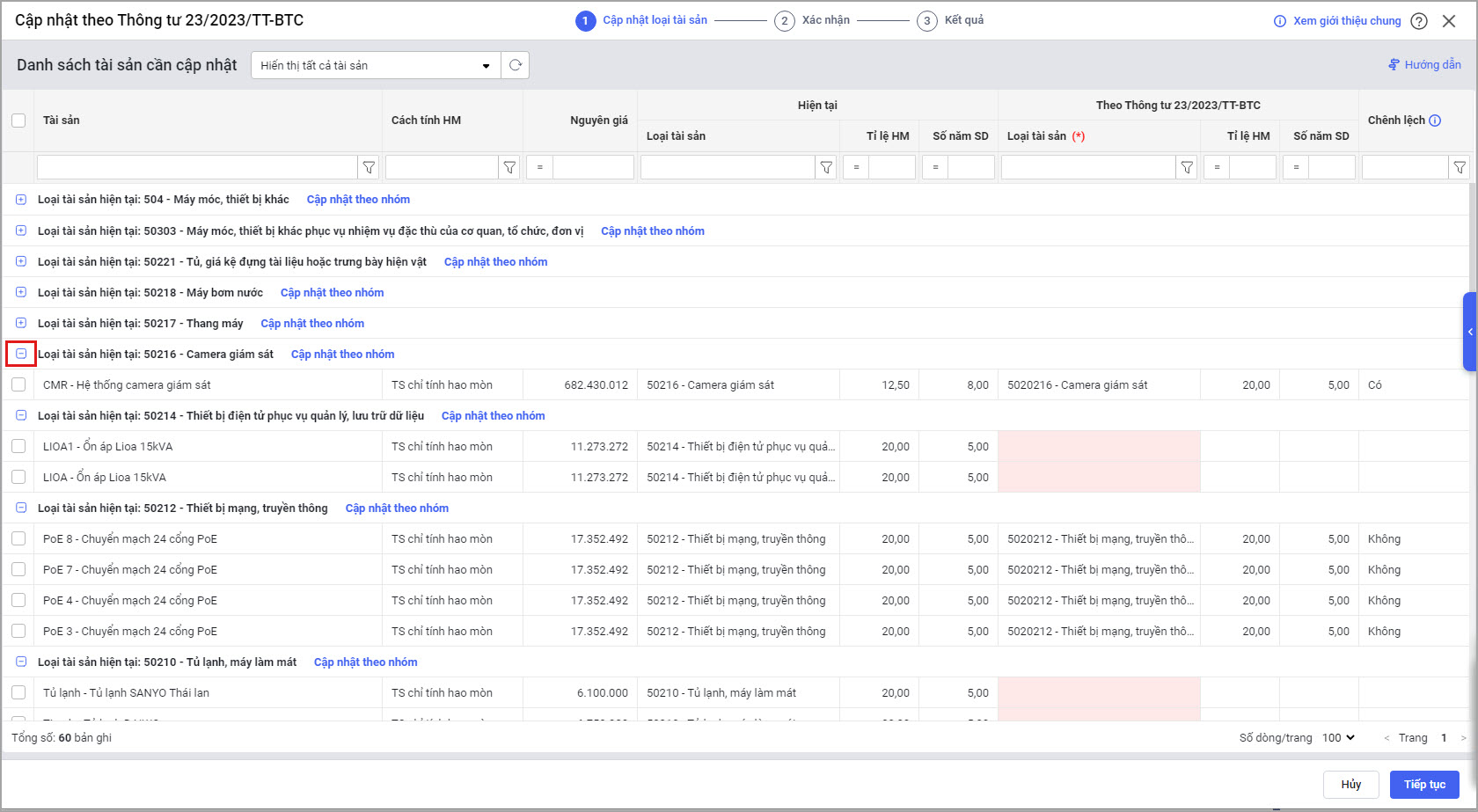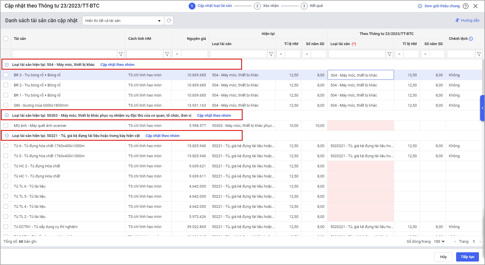Bước 2: Phần mềm gom các tài sản có cùng loại sẽ chung một nhóm.