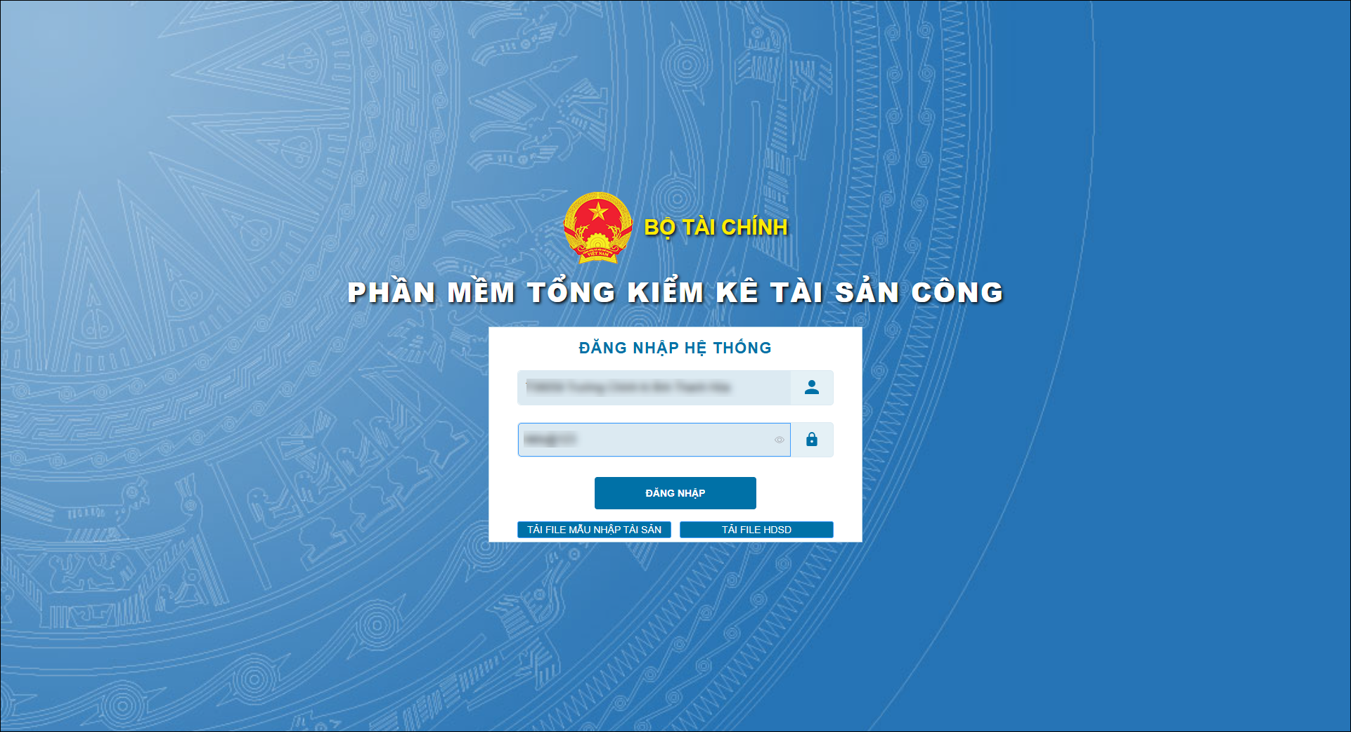 2. Đăng nhập vào phần mềm Tổng kiểm kê tài sản công theo link: https://kktsc.mof.gov.vn/login