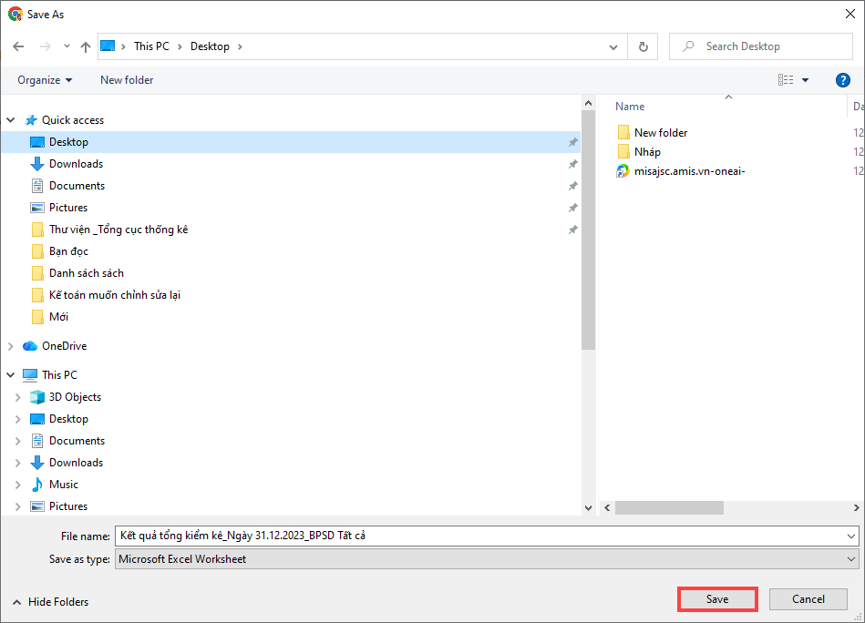 - Tại chứng từ tổng kiểm kê nhấn biểu tượng hình chữ x để thực hiện Xuất khẩu dữ liệu TKK theo biểu mẫu của Bộ Tài chính