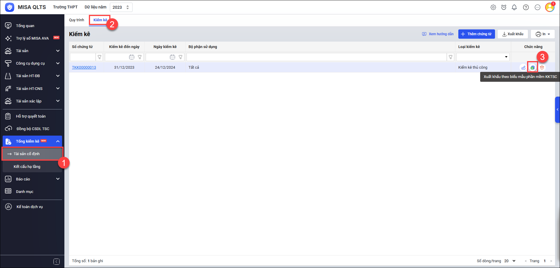- Hệ thống tải về dữ liệu tổng kiểm kê trên phần mềm MISA QLTS