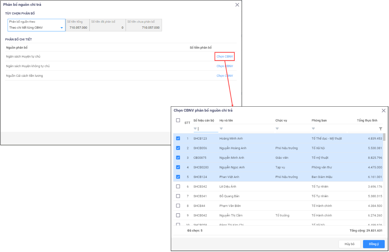 – Thực hiện chuyển tài sản tại Danh sách tài sản theo Thông tư 45/2018/TT-BTC đã được đơn vị khai báo trên phần mềm sang Danh sách tài sản theo Quyết định 09/2020/QĐ-UBND. Để thực hiện chuyển đổi sang loại tài sản theo thông tư mới anh/chị tích chọn 1 hoặc nhiều tài sản, sau đó nhấn biểu tượng mũi tên >, chọn loại tài sản cho các tài sản sắp chuyển đổi, nhấn Chọn.
