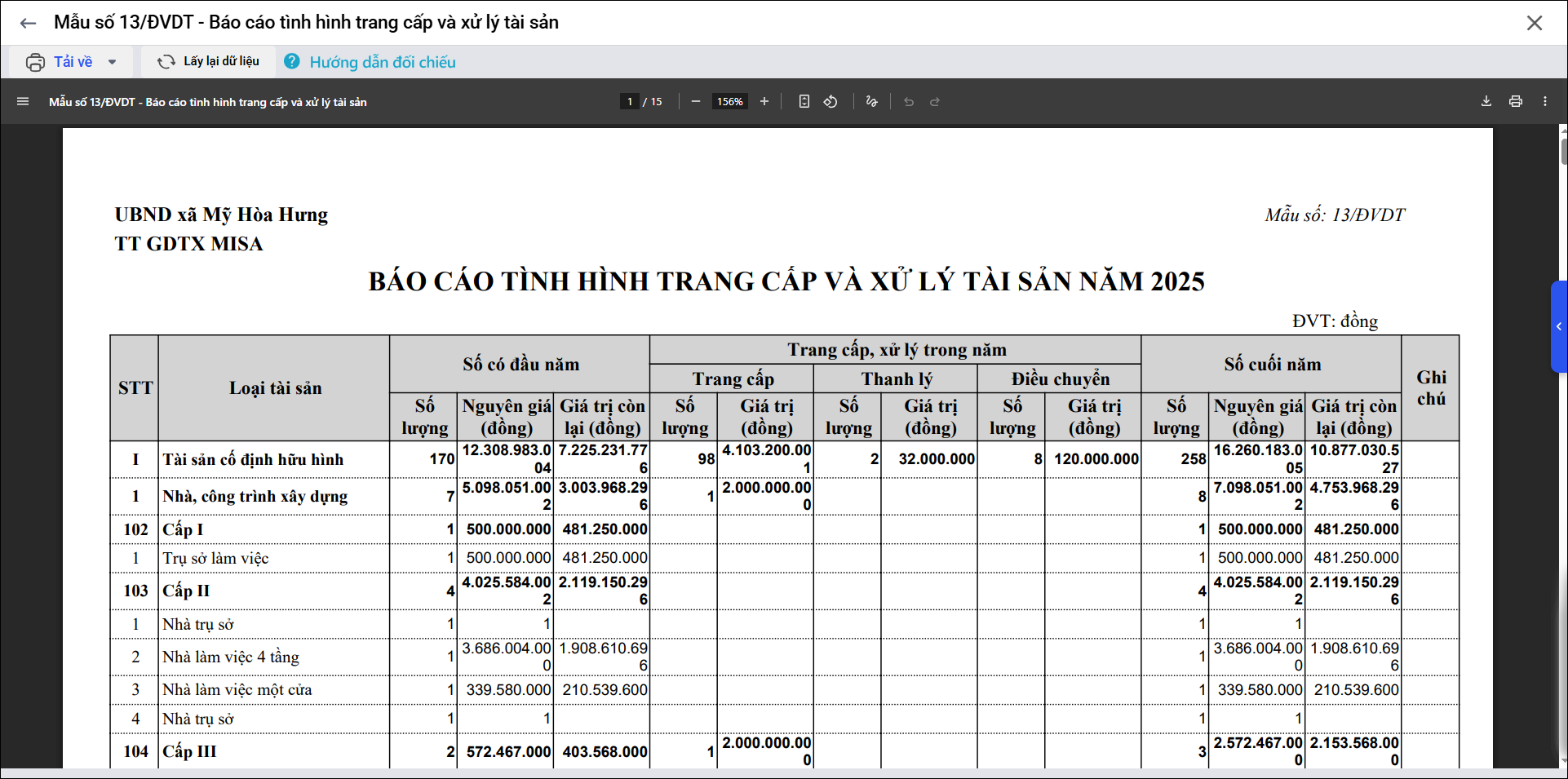 - Số có cuối năm lấy từ danh sách tài sản có trạng thái đang sử dụng vào cuối kỳ báo cáo.
