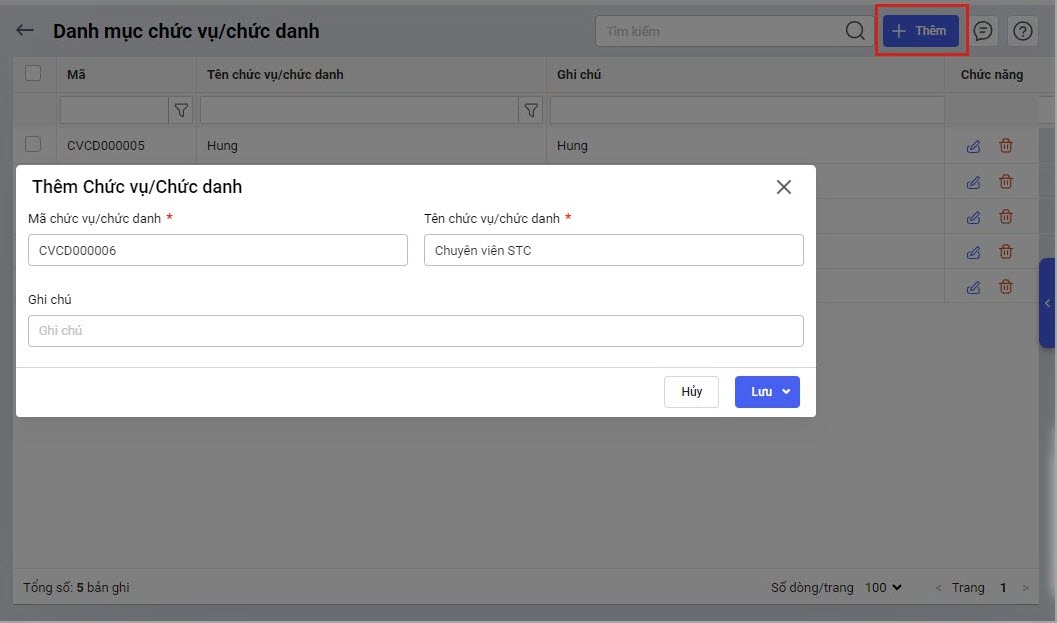 Bước 3: Nhấn Thêm để thêm mới chức vụ/chức danh.