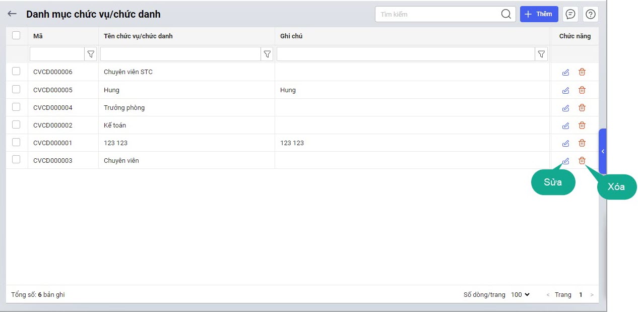 2.2. Sửa/Xóa Chức vụ/Chức danh