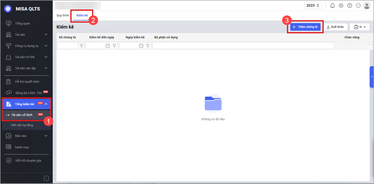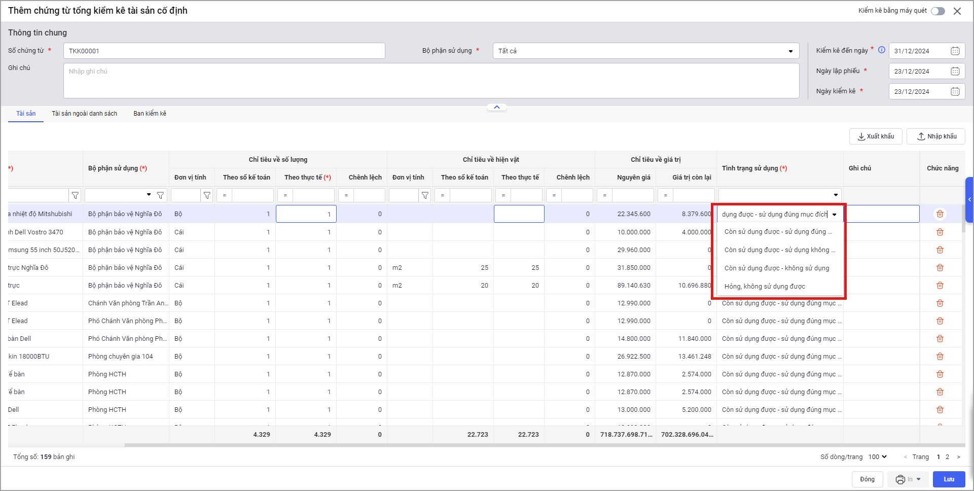 Tại menu Tổng kiểm kê\Thêm chứng từ kiểm kê.