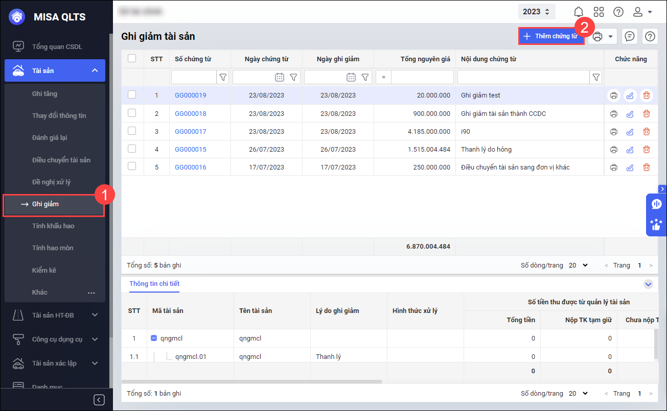 Lưu ý: Nếu anh/chị đã lập chứng từ ghi giảm nhưng trạng thái tài sản trên danh sách vẫn là “Đang sử dụng”, vui lòng kiểm tra lại việc lưu chứng từ hoặc làm lại các bước ghi giảm theo hướng dẫn trong bài này.